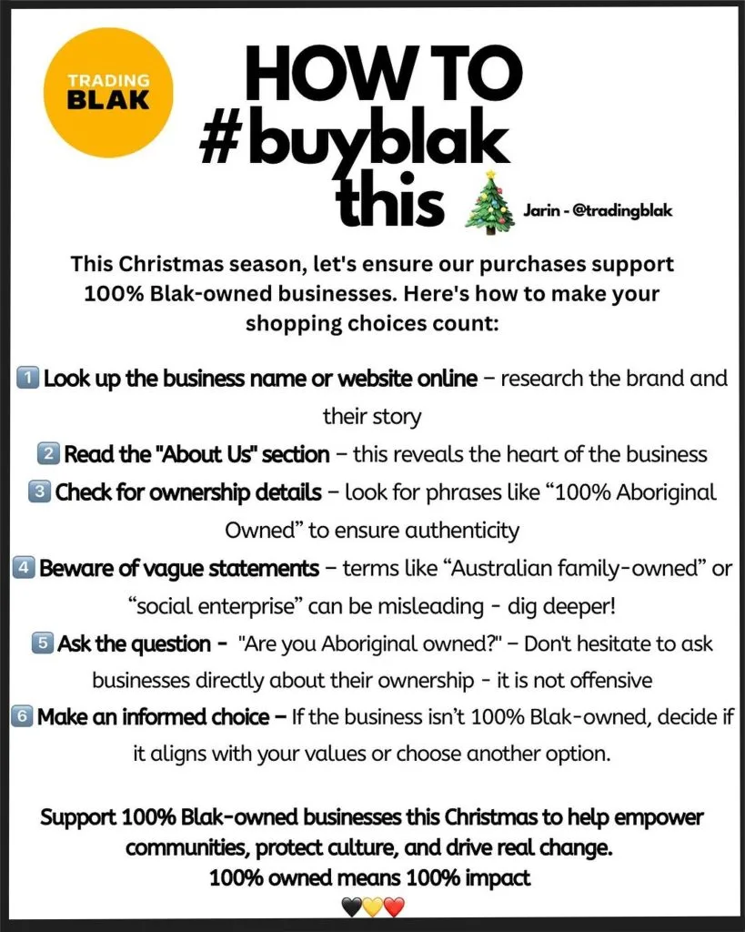 In the lead up to the festive season, Jarin recently posted this really handy resource to help know how to support 100% First Nations owned businesses: