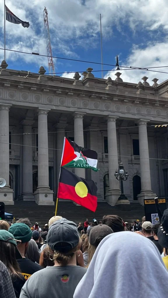 We were proud and grateful to see pro-Palestinian activists out in force today. Rising up from the crowds were both Palestinian and Aboriginal flags, symbolising our shared struggle for liberation.