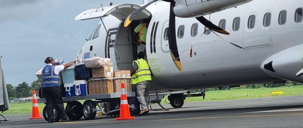 Tuvalu is remote, the population is almost entirely dependent on imported food, there are only three flights per week to Funafuti, they often get cancelled due to weather or fuel shortages, and it takes upwards of a day to reach the outer islands by boat. People often bring back coolers with fresh food and supplies if they are able to travel overseas. © Amnesty International