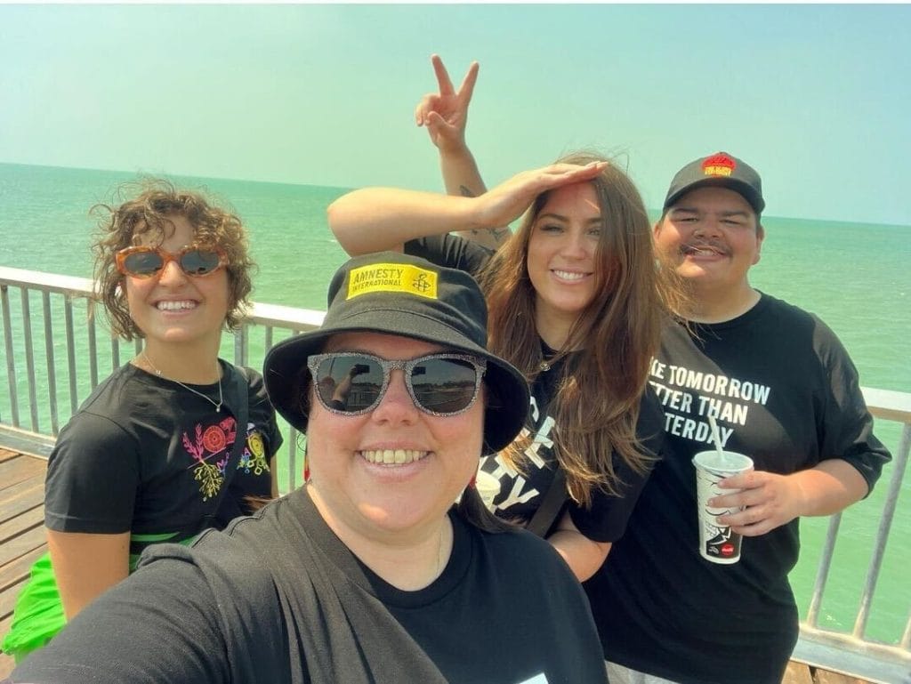 Then in the week leading up to the QLD election, we visited Yaggera, Turrbal, Yugembeh and Kombumerri Country (Brisbane, Gold Coast, Ipswich and Toowoomba), where we filmed content for our socials, met with Amnesty activists and First Nations community members, wobble-boarded in King George Square, found some of our gig posters around Meanjin, and dropped into Sobah Cafe, which is a First Nations business on Kombumerri Country in Burleigh Heads.