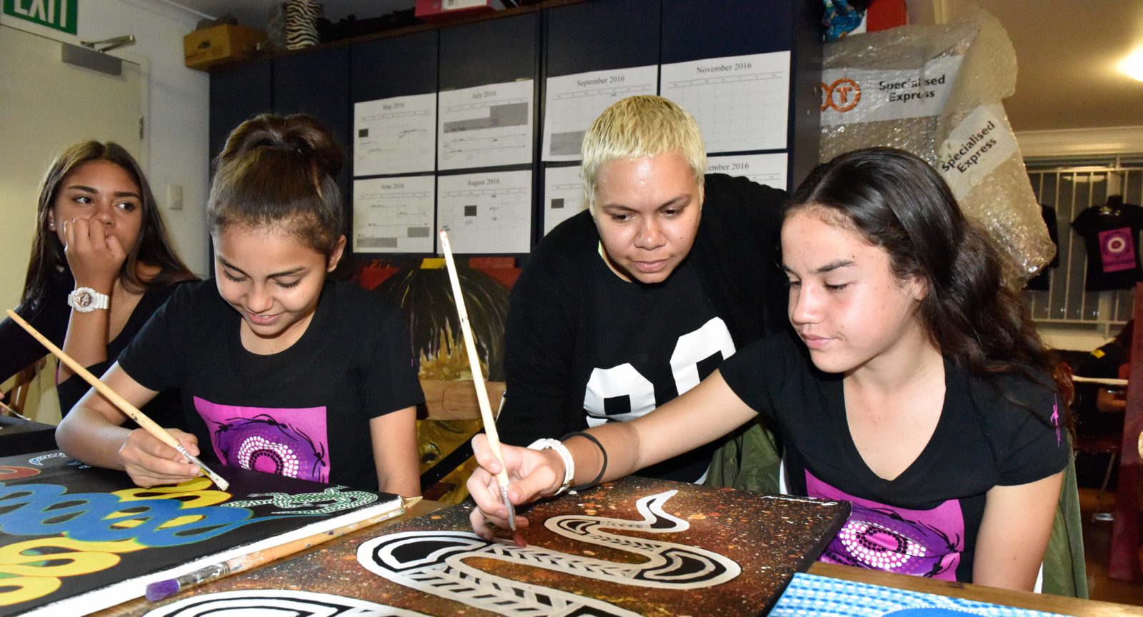 For almost a decade Sisters Inside have run weekly art workshops for Aboriginal and Torres Strait Islander girls, to connect with their culture and be mentored by older women. These workshops culminate in auctions to raise funds for the program.