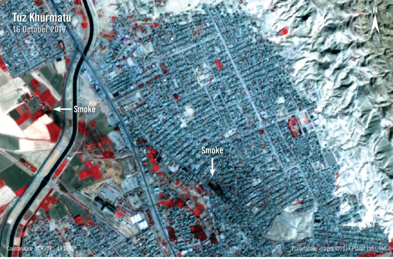 Satellite images, videos, photos and dozens of testimonies collected by Amnesty International show that civilians were forced to flee their homes after fierce clashes erupted between Iraqi government forces, supported by the Popular Mobilisation Units, and Kurdish Peshmerga forces in Iraq’s multi-ethnic city of Tuz Khurmatu on 16 October 2017.