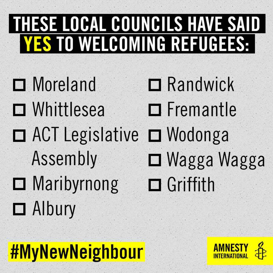 As the campaign heats up, we’ll be casting our net beyond councils to other leaders in our community: our teachers, local businesses and sporting heroes. We look forward to hearing more voices raised loudly and proudly to welcome refugees.
