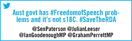 Talk to your friends and family about this important issue, why the RDA is so important, and why Australia needs to lift it’s game on protecting freedom of expression by reforming secrecy and surveillance laws.