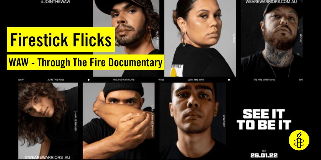 This short, hard-hitting documentary was featured on Amnesty’s Firestick Flicks film club in 2024. We Are Warriors is a First Nations-led movement and an Indigenous social enterprise founded by rap artist Nooky (AKA Corey Webster) to showcase Blak excellence for Aboriginal and Torres Strait Islander young people.