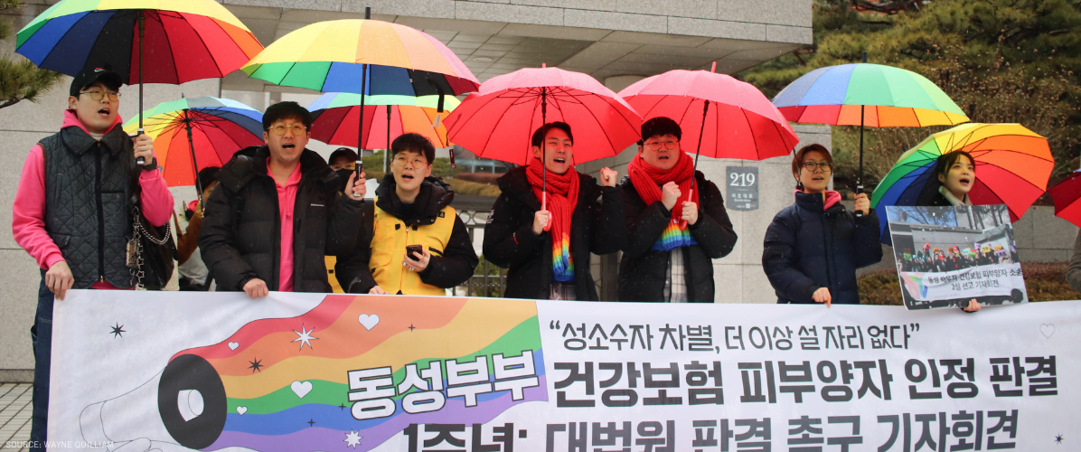 Today, the full bench of South Korea’s Supreme Court made a decision that the country’s National Health Insurance Service (NHIS) should resume spousal benefits for a partner in a same-sex relationship. The court said that treating same-sex couples differently from heterosexual couples is an act of discrimination that violates human dignity and the right to pursue happiness.