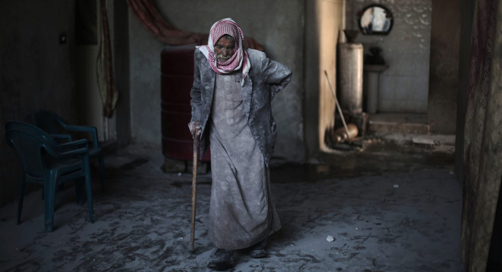 “My family and I could not bear the sound of warplanes and explosions any more so we decided to leave the city at dawn. The ‘road of death’ [Castello Road] is approximately 500 metres long… The taxi driving a family in front of us was hit by an air strike. The car burst into flames… we couldn’t stop to check if anyone survived. On the way, I saw five human bodies rotting on the side of the road,” he said.