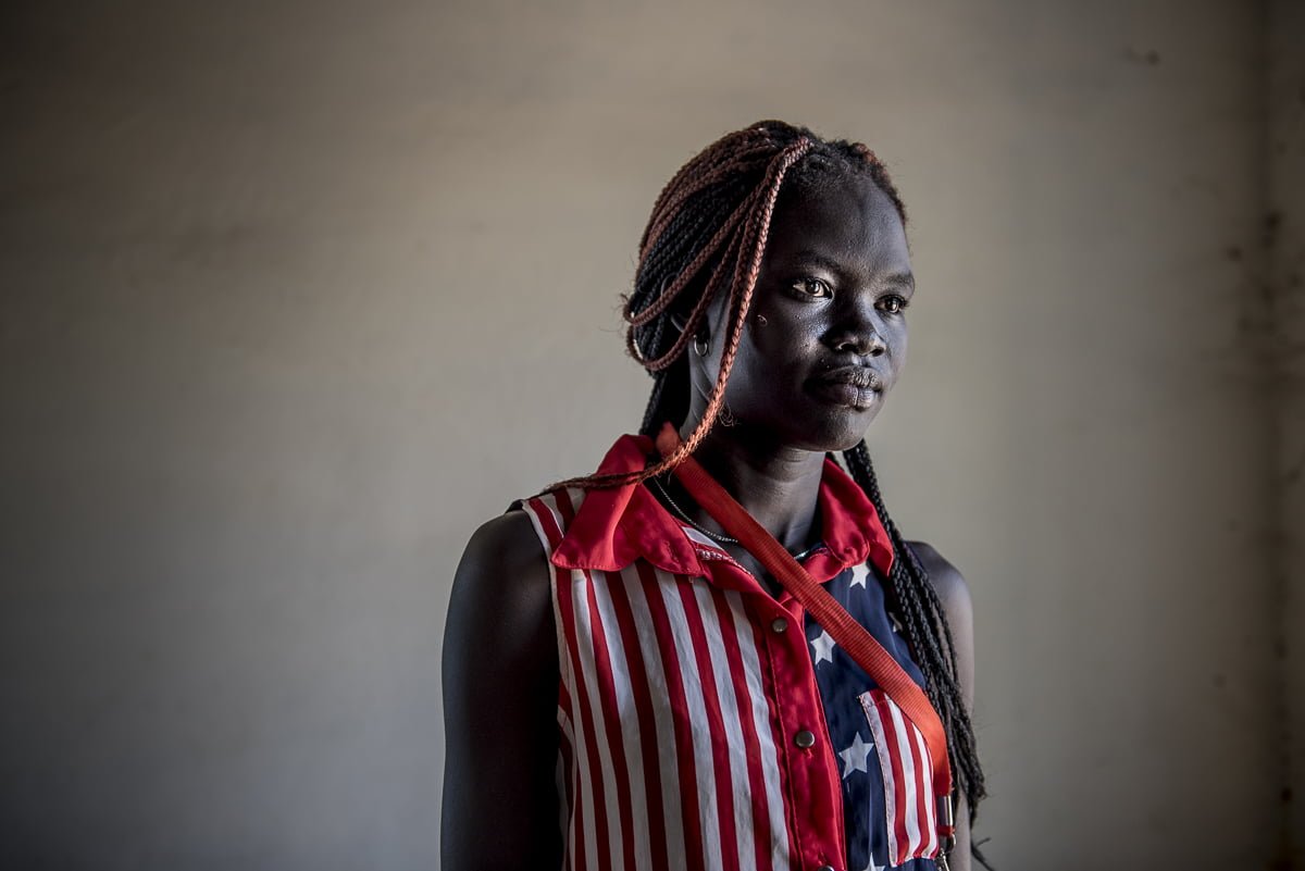 Teresa, a young refugee, attends a screening of the Olympics at the Kakuma refuge camp in Northern Kenya.