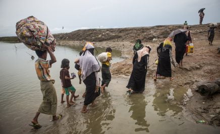 Rohingya refugees walk through a paddy field in Bangladesh © K M Asad/LightRocket/Getty Images