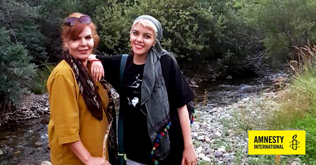 Iranian women's rights defender Yasaman Aryani (right) with her mother, Monireh Arabshahi (left). © Private